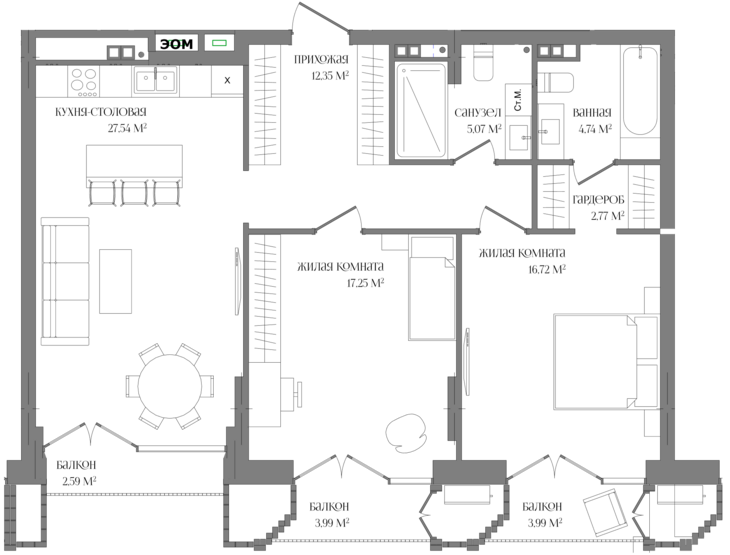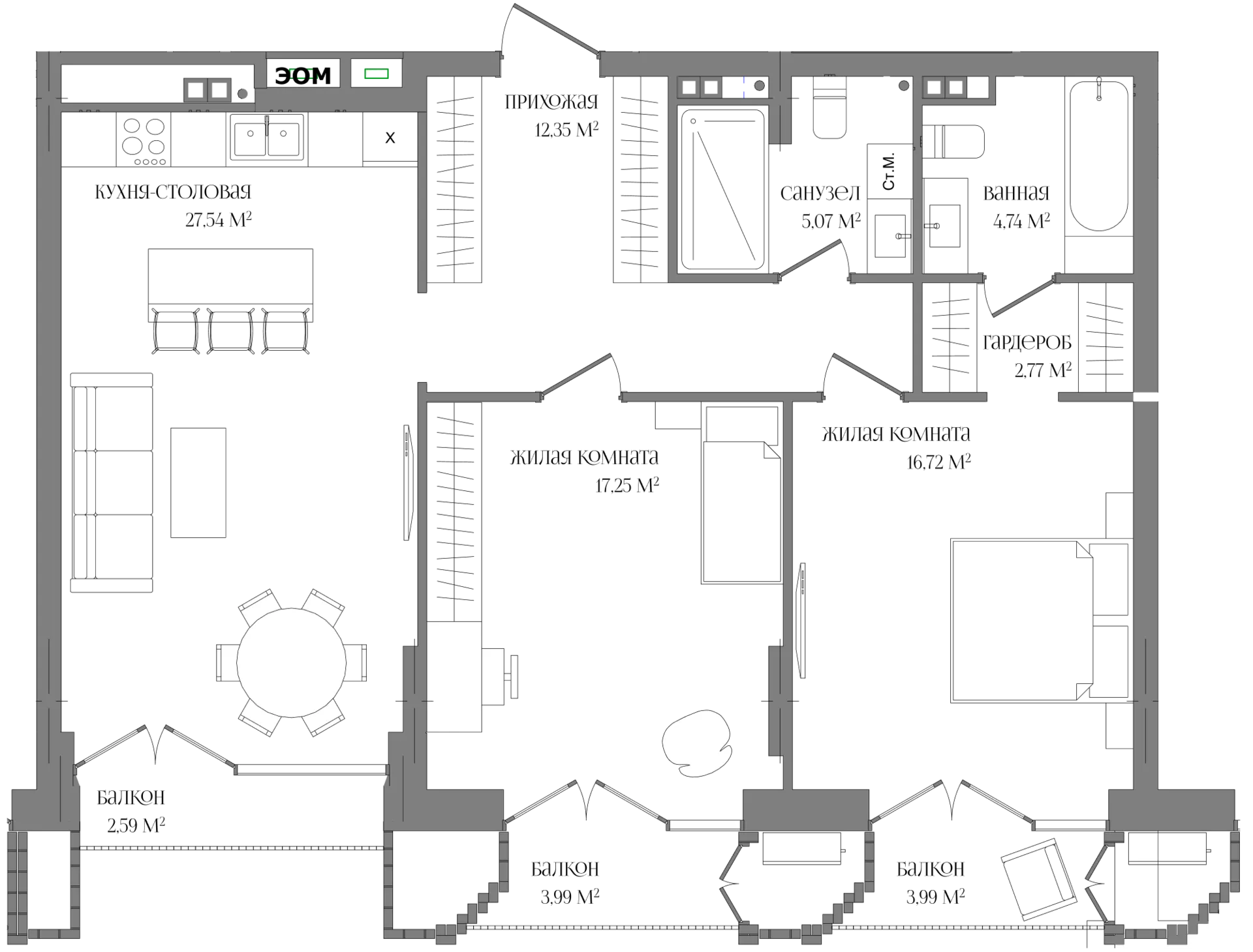 Подземный паркинг рассчитан на 51 автомобиль и полностью соответствует уровню дома. Здесь найдётся место как для солидного внедорожника бизнес-класса, так и для динамичного фешенебельного спорткара с низкой посадкой. Для владельцев электромобилей предусмотрена современная зарядная станция — комфорт и технологии всегда под рукой