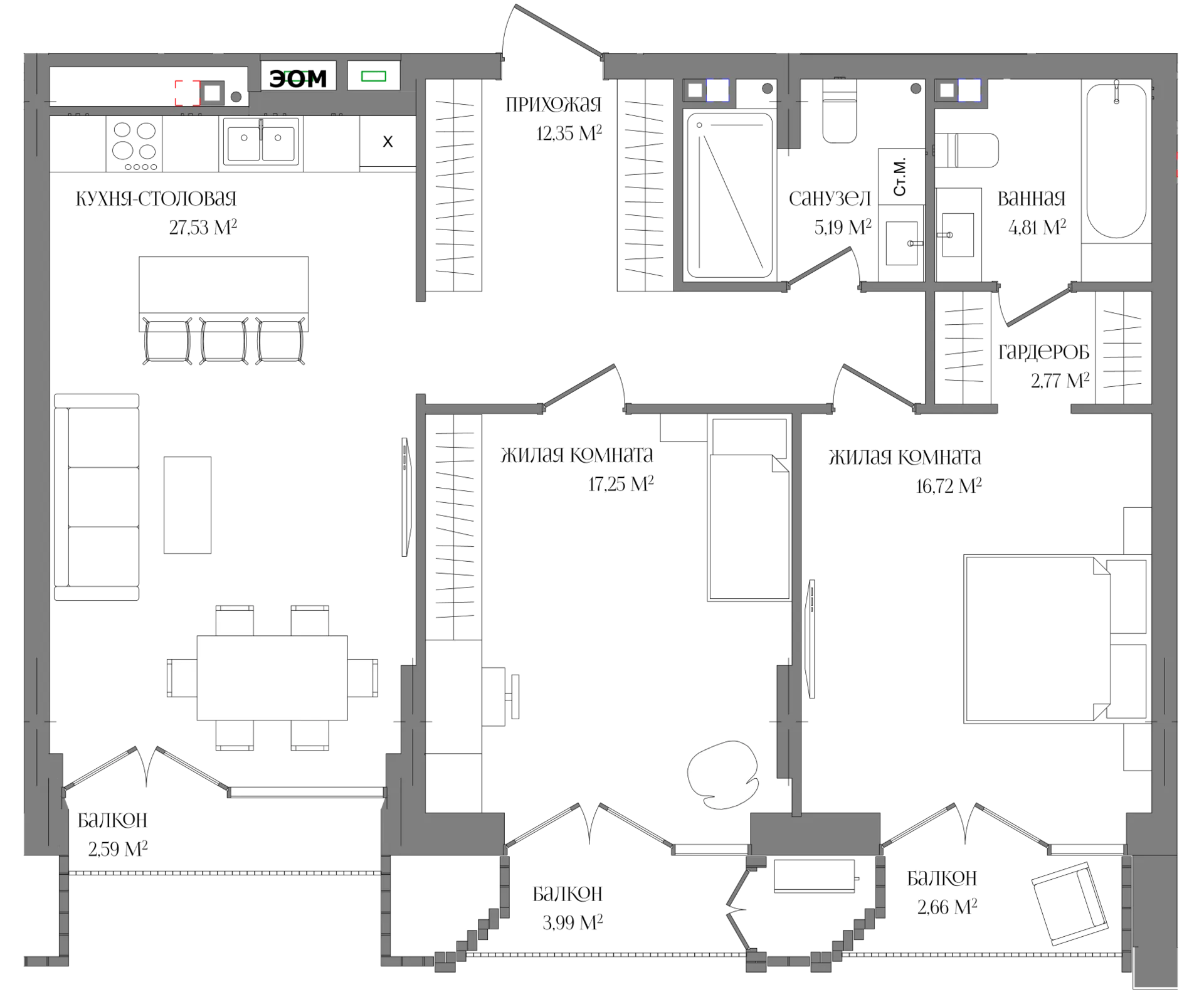 Подземный паркинг рассчитан на 51 автомобиль и полностью соответствует уровню дома. Здесь найдётся место как для солидного внедорожника бизнес-класса, так и для динамичного фешенебельного спорткара с низкой посадкой. Для владельцев электромобилей предусмотрена современная зарядная станция — комфорт и технологии всегда под рукой